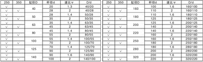 D/d——缸徑/杠徑(詳見表一)